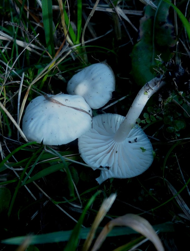 : Jetzt brauche ich wirkleich eure Hilfe : Diese weisslichen, hübschen Pilzchen fand ich in der Wiese einer Kuhweide. Sie schauen wie Ellerlinge aus. (Hygrocybe/Camarophyllus?) Sie haben kaum das relativ kurze Gras durchdrungen. : Der Hut (d25mm) ist weisslich und hat einen ockerlichen Buckel und der zylindrische, glatte Stiel (45/4mm) ist auch hellocker-weisslich gefärbt : Die Stielspitze ist nicht verjüngend. Von unten erscheinen Hut und die durchmischten Lamellen in einem hellrosa Schimmer : Er ist mild und hat keinen auffallenden Geruch.