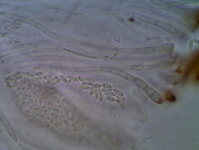 Vielen Dank Martin Kazuya und Toffel Hatte mir schon fast gedacht, das es eine Flechte ist. Die Ascoschläuche sind vielsporig, vielleicht 64 Sporen oder mehr. So etwas ähnliches hatte ich schon mal bei einem Pyreno gesehen. LG Hartmut