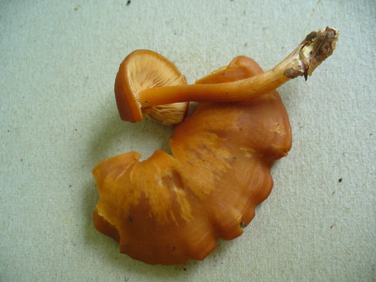 Beschreibung: Habitus collybioid, Hut alt schwach genabelt, Lamellen breit bis leicht ausgebuchtet angewachsen;