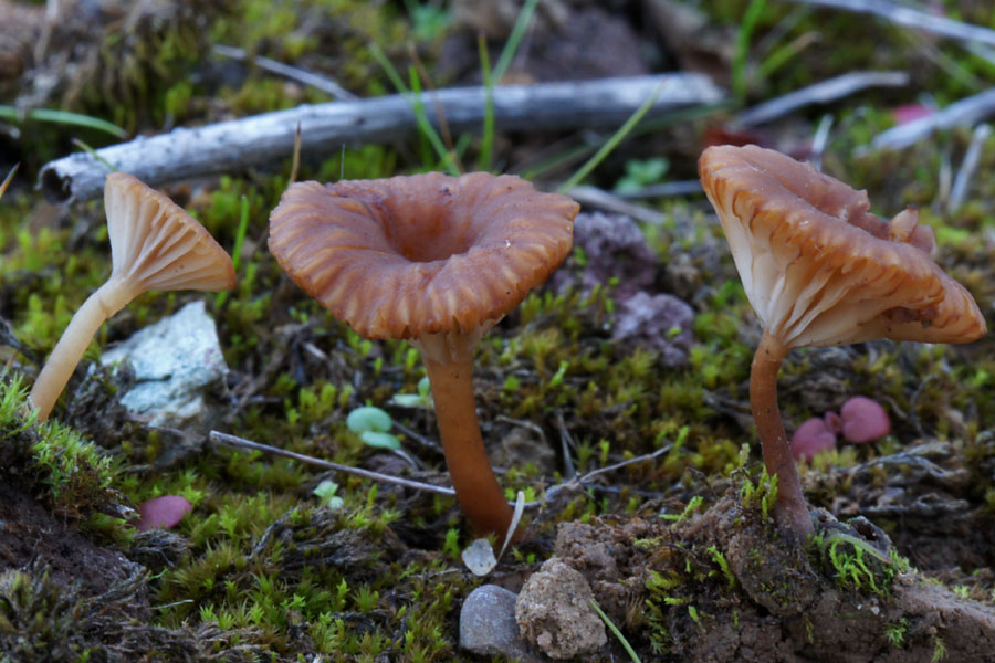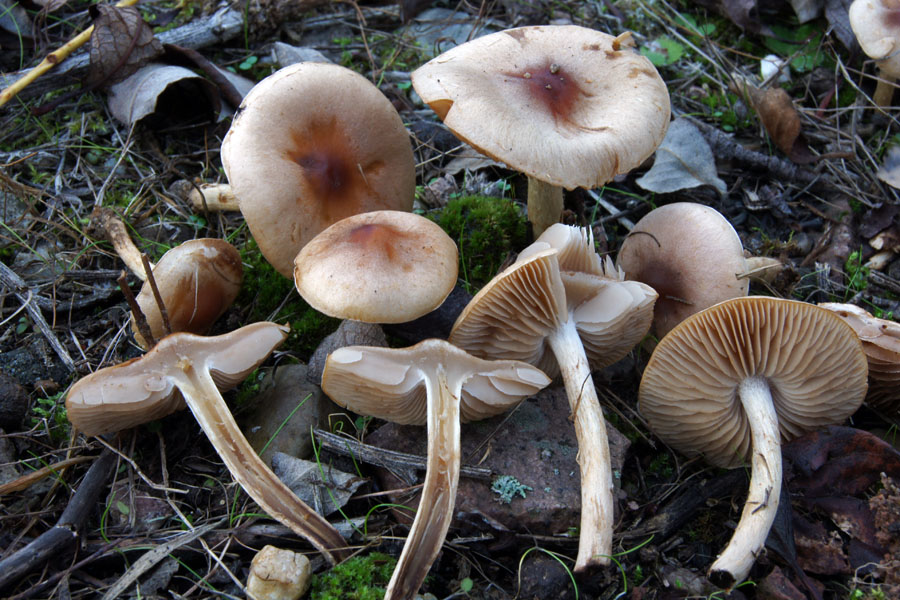 Jetzt zu den beiden Fraglichen am diesem Standort. 1. Eine Hebeloma. Die sind mir immer irgendwie suspekt und ich gucke schnell weg, wenn ich welche sehe. Dort gabs aber nicht allzuviel, also mal reingekniet. Angenehm süßer Geruch, den ich mit Kakao in Verbindung bringen würde. Recht zierliche und kleine FK, Stielinneres abwärts immer dunkler braun, in der Basis schwarz. Mit Hebeloma laterinum bin ich unsicher, könnte das vom Bild her passen?