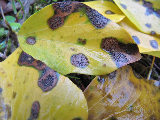 Auf abgefallenen Efeublättern fand ich im Mai dieses Jahres diese Flecken. Weiss jemand, worum es sich handeln könnte?