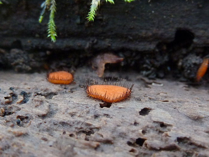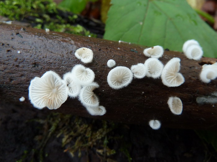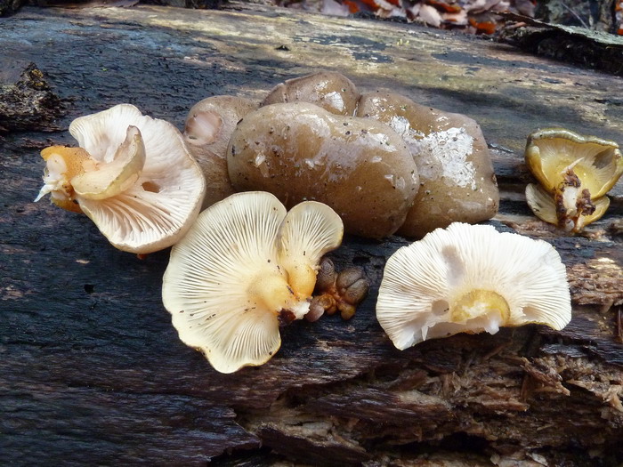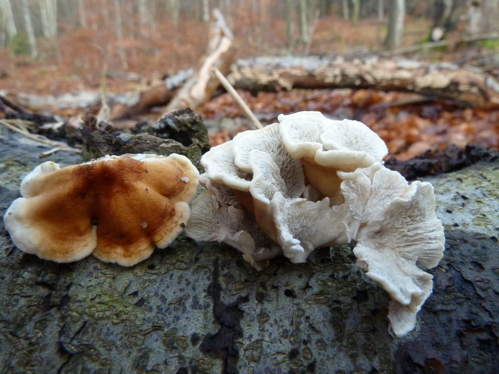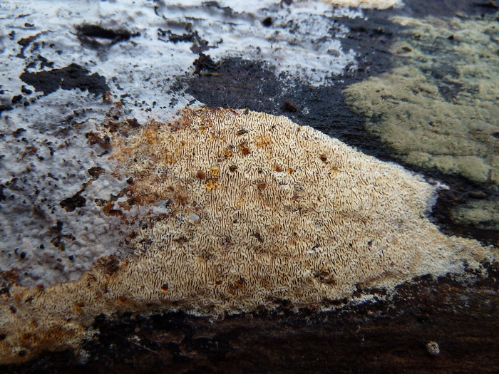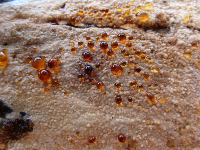 noch nicht untersucht, Porling und ein schöner Schichtpilz mit Tropfen