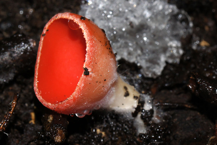 Und etwas für mich völlig Neues, auf Hasenknödeln, Stiel vielleicht 1-2 mm lang, weiß/durchscheinend, Hut gelb. Ob und was unter dem Hut steckt, konnte ich nicht erkennen. Die Pilzchen haben den Transport nur mäßig überlebt, vielleicht kann ich sie zu Hause nochmal aufpäppeln: