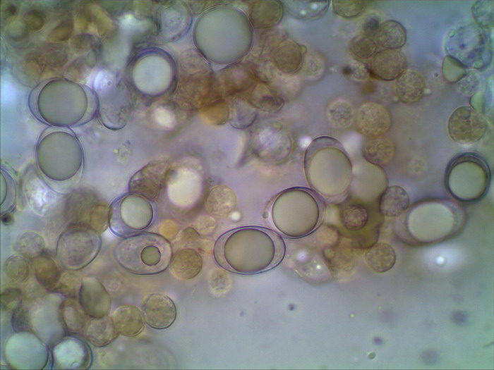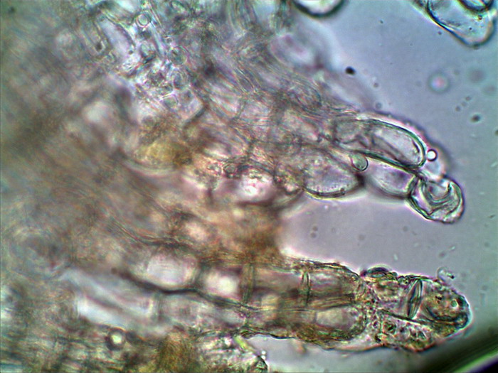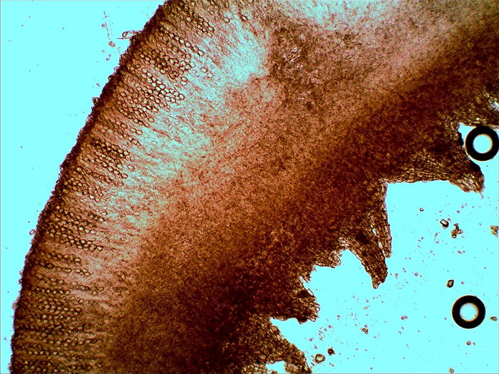 stehen auch nicht in der dort beschrieben Sporengröße von 16-21,6 x 10-12,6 entgegen, zumal ich glaube, anhand der Sporengröße kann man die Art wohl nicht eingrenzen. Desweiteren werden im Excipulum bis 0,9ym verdickte, gelbliche Zellwände mit tiefbraunen bis schwarzbraunen, inkrustierten Wandpigmenten beschrieden, ähnliches fand ich. Da mikroskopisch nichts gegen die Art spricht und makroskopisch diese Art wohl am besten passt, lege ich die Art nun so ab. LG Hartmut