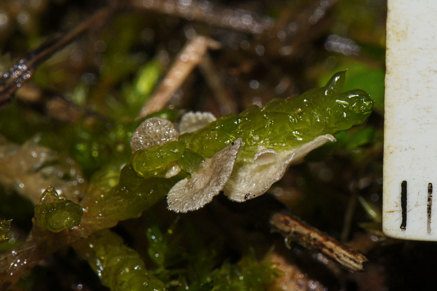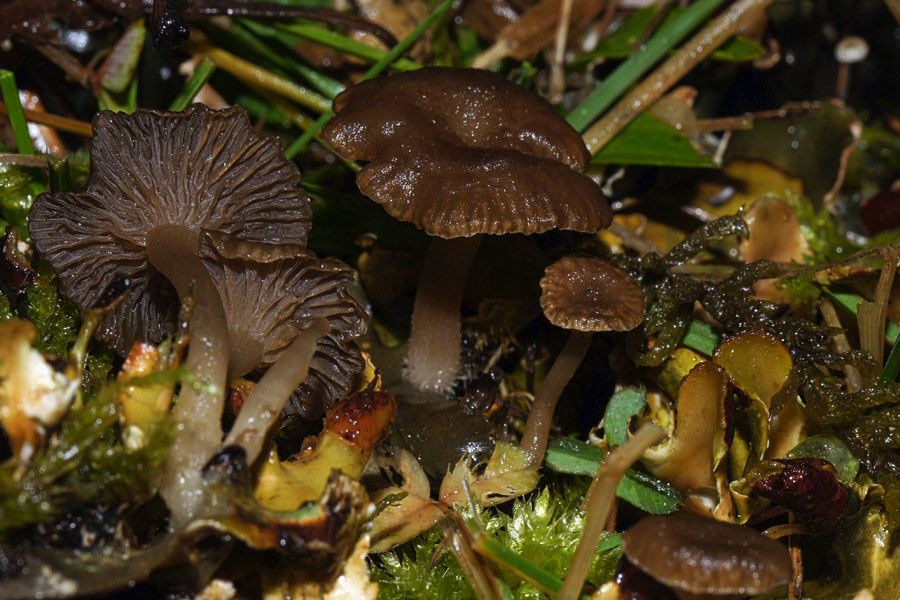 Ein letzter von heute, es war schon zappenduster und ich konnte nur noch kleine braune Kringel auf den Hundsflechten erkennen, die Stelle kannte ich aber vom letzten Jahr. Man gab mir damals freundlicherweise hier im Forum den guten Tipp zu Omphalina rickenii, solange ich nur makroskopiere und mir nichts anderes dazu einfällt, bleibe ich vorerst dabei: