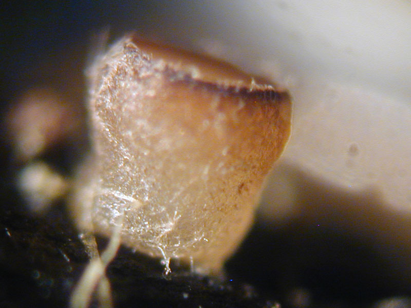 Liebe Pilzfreunde, lieber Hartmut, Schade dass das Substrat schon entsorgt ist. Ich wäre sehr interessiert gewesen in der Entwicklung von dem untersten, haarigen Exemplar. Könnte es vielleicht eine Fimaria gewesen sein? F.theioleuca ist auch so haarig an der Aussenseite. Siehe Foto, durchs Mikroskop genommen.