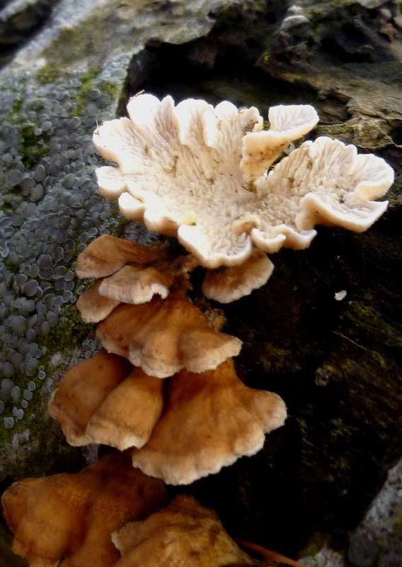 Bitte euch um Beurteilung. Fand heute diese kleinen lustigen Hänger an absterbender Erle auf rund 1000m. Ich würde sie, hab ein Pilzchen in Unteransicht dazugelegt, als Plicaturopsis crispa bzw. Aderzähling benennen. (Bon S322 und Gerhardt S224/Zweites Bild folgt sofort)