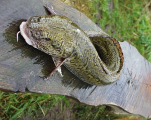 Lota lota ist die Aalquappe oder Trüsche oder Rutte, je nachdem wo man wohnt. Die ist mit dem Aal nicht verwandt, vielmehr ist es die einzige im Süßwasser lebende Dorschart. Die Verwandtschaft zeigt sich in den kehlständigen Bauchflossen und in dem einzelnen Bartfaden. Ich habe mal ein Bild angehängt.