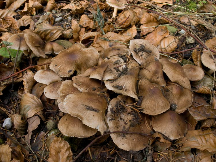 Die nächste Kollektion ist makroskopisch wie mikroskopisch (Zystiden) etwas überdimensioniert, im Übrigen aber wohl eine typische große I. fuscidula und mit der ersten Kollektion durchaus vergleichbar. Koll. 2) Inocybe fuscidula Velen. var. fuscidula; vom Taubenberg, bei Tanne und Fichte; diese Aufsammlung vom 6. November 2010 bestand aus über 50 (!) teils büschelig gewachsenen Pilzen mit bis zu 7 cm Hutdurchmesser: