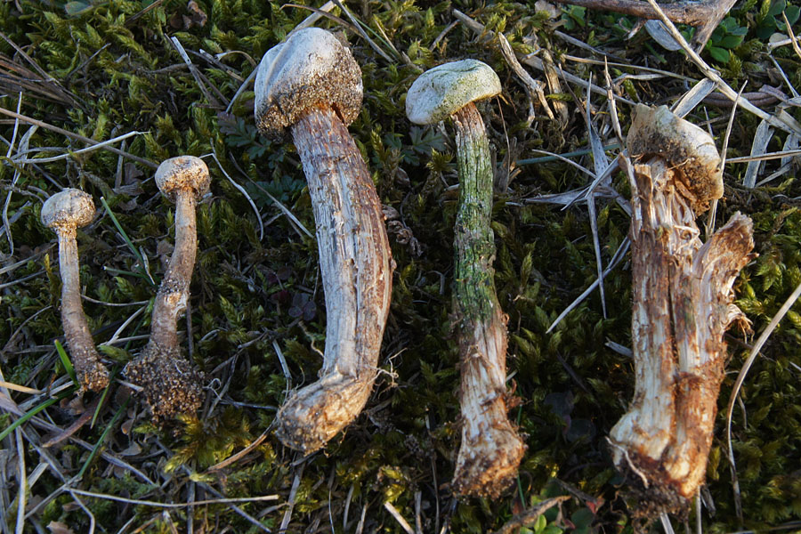 Noch zu den Stielbovisten. Ich hatte dort bisher drei kleinere Fundstellen von T. brumale zusammengesucht, sofern man das Gebiet unterteilen wollte, wären meine Fundstellen heute ums zig-fache gewachsen - und das nur, weil ich mal von wo anders losging. Im Sand II kenne ich zwei Stellen, im Sand I jetzt - naja, eine große Stelle. Alle paar Schritt diese wunderbaren Winzlinge, das war heute mein absoluter Brumale-Overkill, bei hundert habe ich aufgehört, zu zählen: