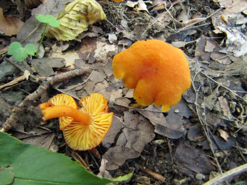 Hallo! Ich habe hier noch zwei Unbestimmte aus dem letzten Jahr. Einen Saftling und einen Saftporling (denke ich zumindest). Bei dem Saftling tippe ich auf den Mennigroten (Hygrocybe miniata). Wuchs gesellig am Wegesrand in einem Eichen-Rotbuchenwald. Ich nehme aber an, dass eine genaue Bestimmung ohne Mikro nicht möglich ist.
