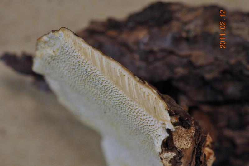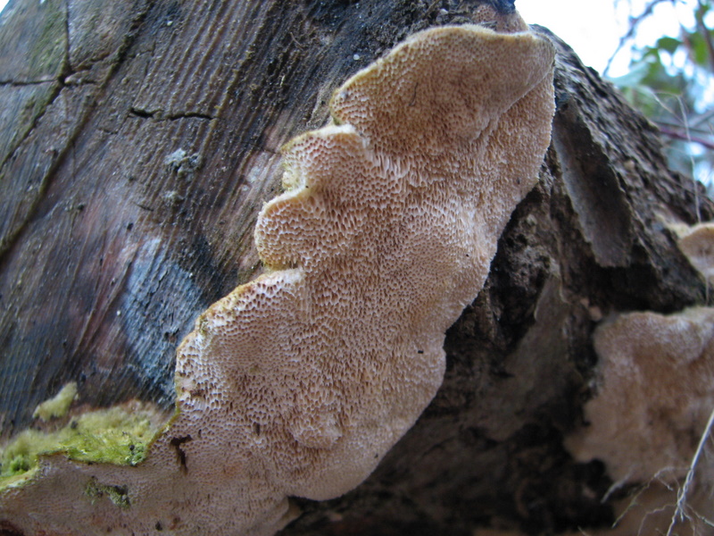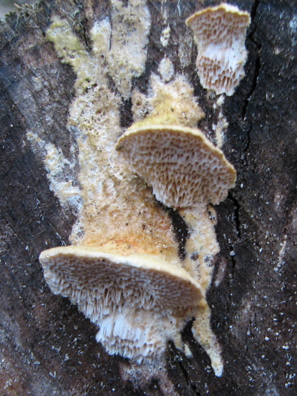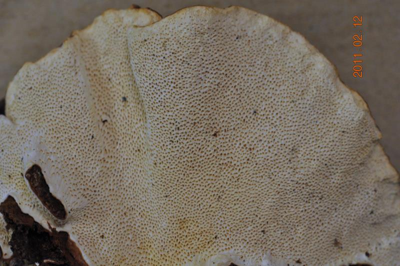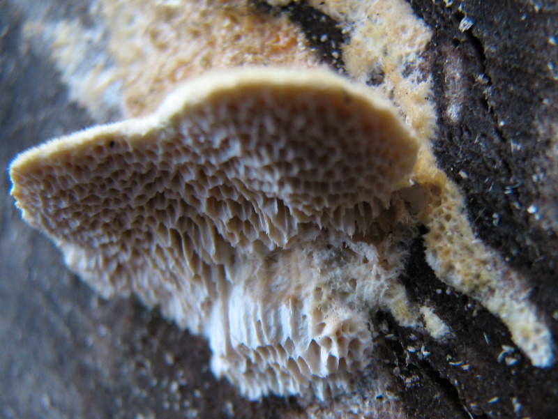 Wenn es denn Kiefernholz wäre, käme für mich vielleicht die seltene Gilbende Kiefern-Tramete (Diplomitoprus flavescens) in Frage (siehe auch E.Gerhardt, Seite 520). Für Laubholz finde ich nichts passendes. Kann mir in beiden Fällen geholfen werden ? Gruß aus dem Pfälzerwald