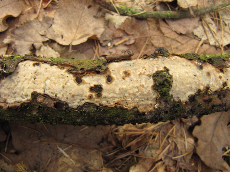 Hallo! Ich habe hier noch ein paar Funde der letzten Tage, bei denen ich mir mit der Bestimmung nicht ganz sicher bin. 1.1. Vielleicht Fleischroter Zystidenrindenpilz (Peniophora incarnata)?