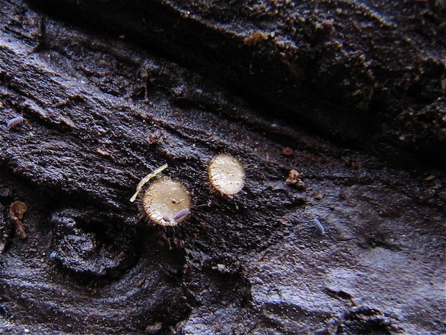 Hallo zusammen Dieser Ascomycet wuchs an einer sehr verrotteten Baumrinde; es könnte Fichte gewesen sein, war aber nicht mehr sicher auszumachen. Auch der Pilz war schon etwas alt und voller Algen auf dem Hymenium. Auf dem Foto macht es sich ein Schneefloh darauf gemütlich.