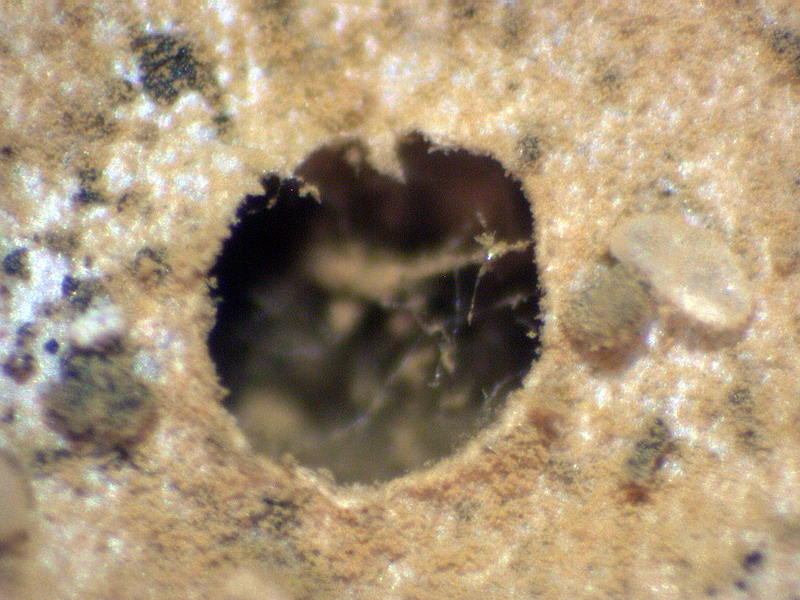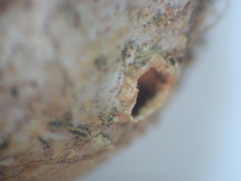 Hier ist schon die Frage schwierig zu beantworten, ob das Peristom fimbriat oder zylindrisch ausgebildet ist. Unserer Meinung nach fast nur eine Öffnung, rein andeutungsweise und sehr kurz zylindrisch, bei einem Exemplar. Der erste Gedanke war kotlabae, aber wir hatten das Glück, diesen mit der Kollektion von den Mainzer Sanddünen zu vergleichen. Mit deutlich verschiedenen Sporenornament, wie weiter unten zu sehen ist. Auch pulchellum mit nahezu (unter Lichtmikroskop) glatten Sporen fällt eindeutig raus. Also Peter und ich wissen hierzu noch keinen Rat, deshalb müssen wir uns in Kürze mal durch den Wrigth kämpfen. Hilfe selbstverständlich gerne willkommen !!
