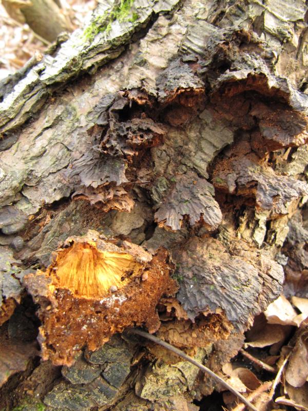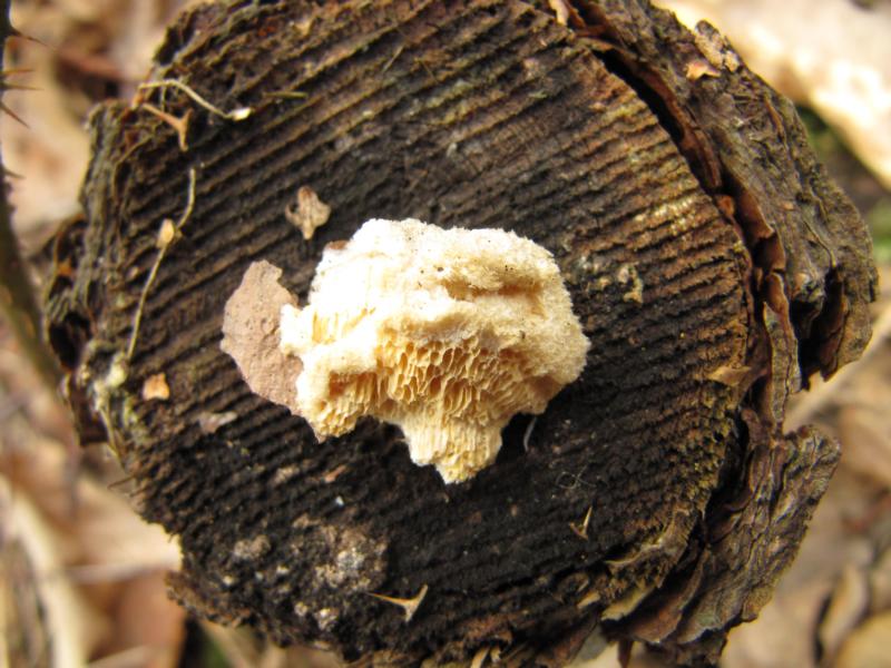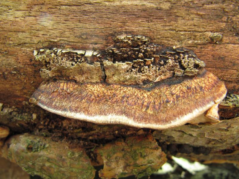 Pilz 4: Ist dieser schon recht mitgenommene Porling noch bestimmbar? Das Substrat ist Eiche, denke ich.