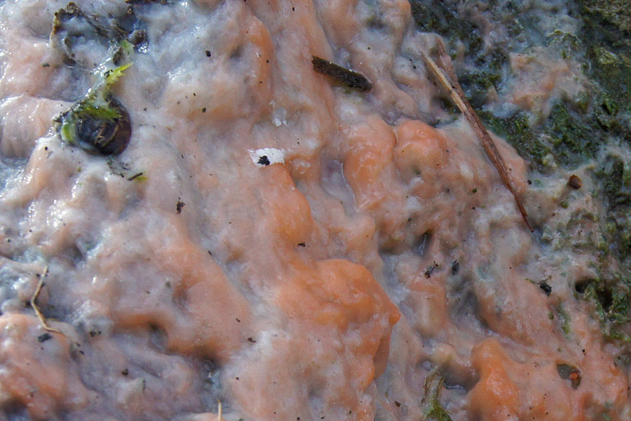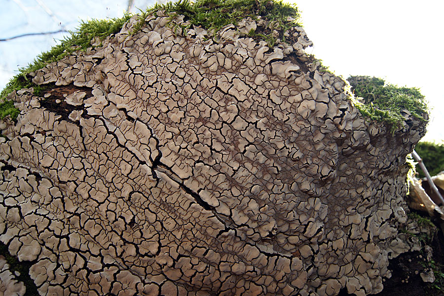 Ansonsten gab es es im Bruch neben Stereum-Arten noch hauptsächlich frische bis uralte Auricularia mesenterica, ein paar Coriolopsis-Funde (wahrscheinlich gallica) und eine Uralt-Eiche mit einigen ggf. alten Hericium-FK - da muss ich aber noch etwas "in mich gehen", bevor ich solche Lappen zu benennen versuche... Achso, noch der vermeintliche frustulatus, Xylobolus: