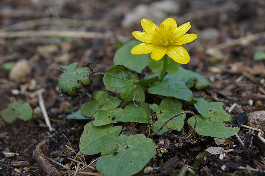 Vielleicht hat jemand einen Tipp, in welche Richtung der gehen könnte? Vereinzelt ein paar erste violette Blüten in der Nähe vom Bach, Corydalis cava: