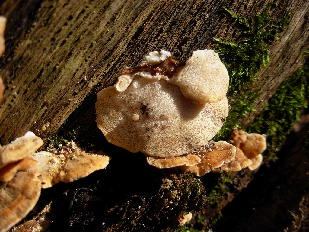 Ach ja da war noch ein anderer Pilz ,am gleichem Stamm.Was meint den diese Runde da zu, und alle Pilz Freunde! ?? Zottiger Schichtpilz ? Stereum hirsutum ?