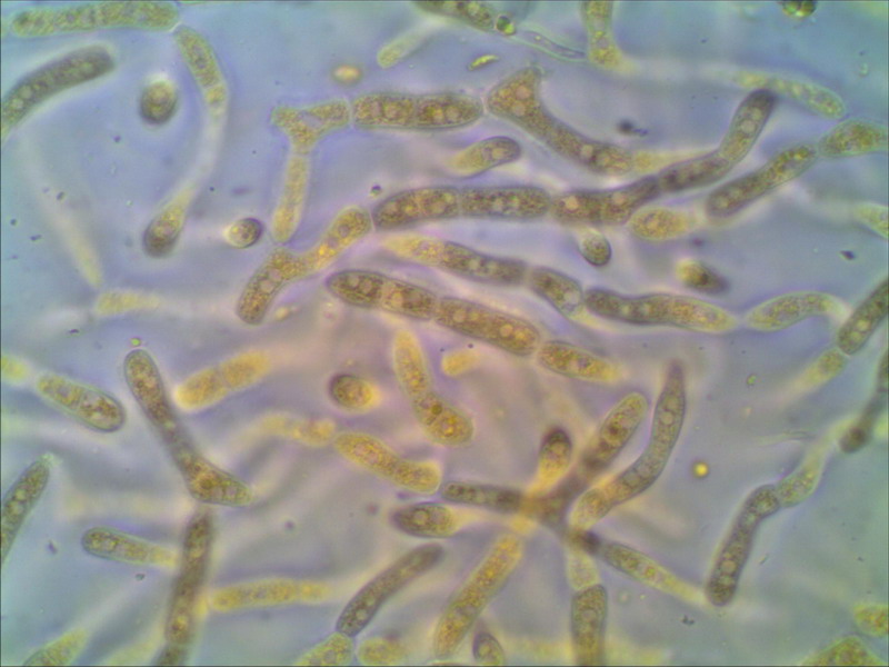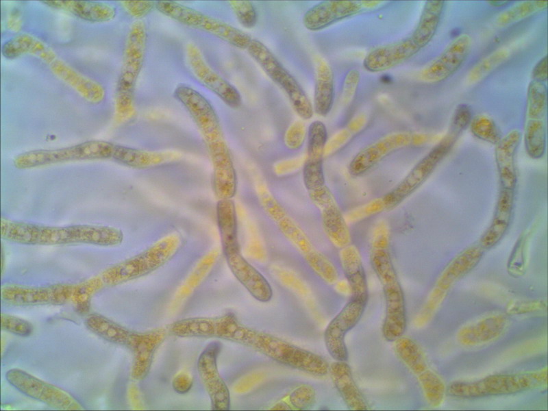 : Wäre einen Mikroskopversuch wert, ich könnte mir gut Exidiopsis vorstellen. Hallo Ingo Vielen Dank! das Gelbe Gallertartige habe ich unterm Glas gehabt, werde aber nicht recht schlau daraus. Sporen sehe ich keine. Das Gebilde war sehr weich und ließ sich vom Holz ganz leicht abstreichen. Wohlmöglich ist es gar kein Pilz