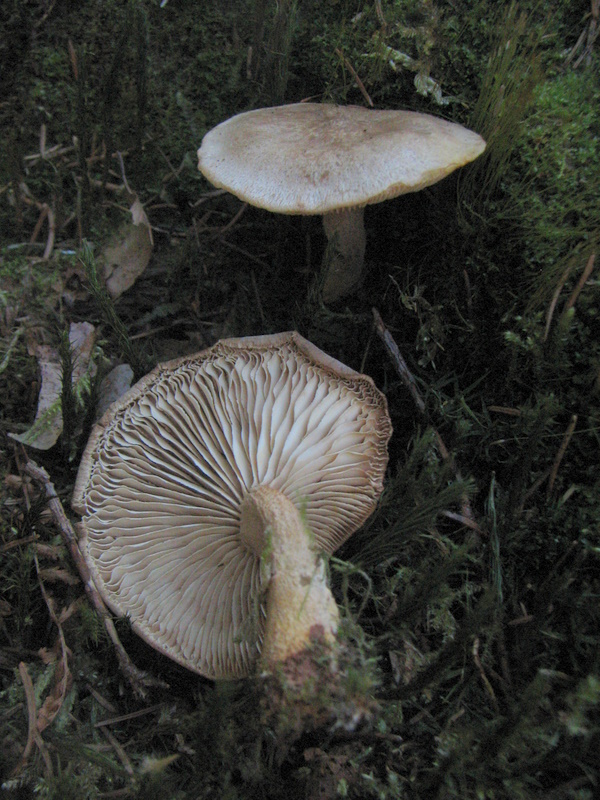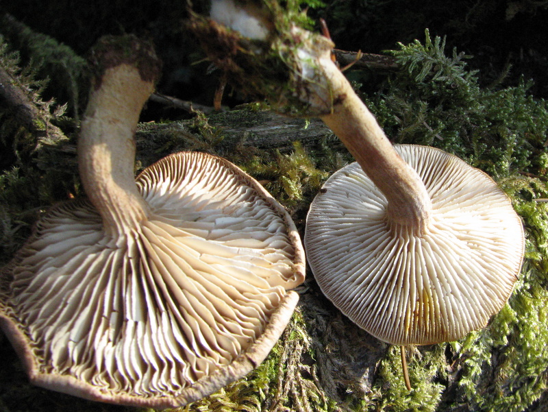 Auf einem Kiefernstumpf, endlich mal wieder ein Pilz mit Hut und Stiel. Vom Äußeren her ein Breitblattrübling, paßt aber irgendwie nicht in die Jahreszeit. Weis jemand eine Alternative ? Liegt zur Zeit beim Aussporen.
