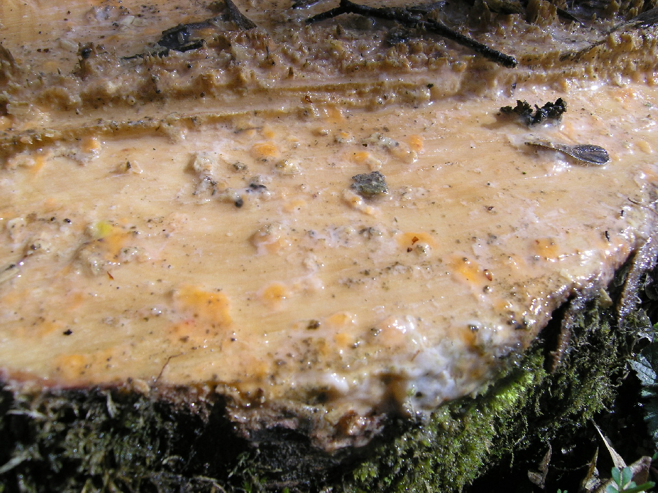 und auch der schon hinreichend diskutierte "Schnittflächenschleim" war wieder mehrfach zu sehen, diesmal auf einem Bergahornstumpf..