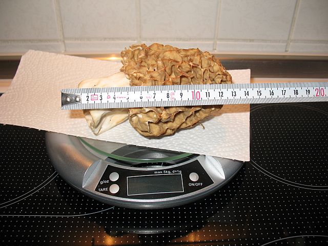 Hallo Pilzgemeinde, bei unserer Morchelpirsch am Wochende gab es außer einer Rotte Schwarzkittel (davon leider kein Bild) diesen doch recht großen Fruchtkörper einer Esculenta!
