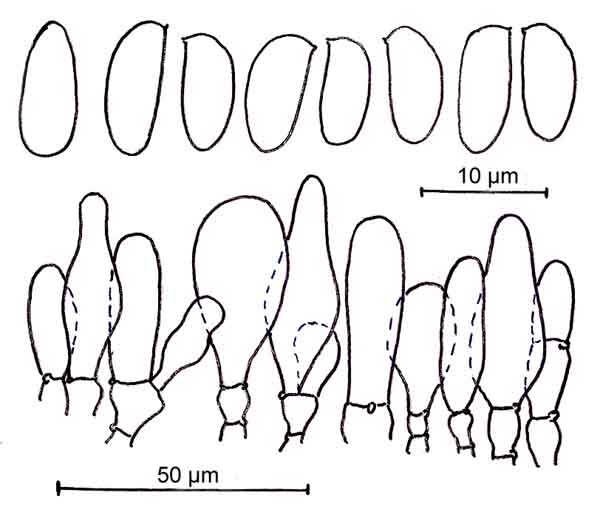 Mikrozeichnungen: Sporen und Cheilozystiden von Kollektion RÖDEL