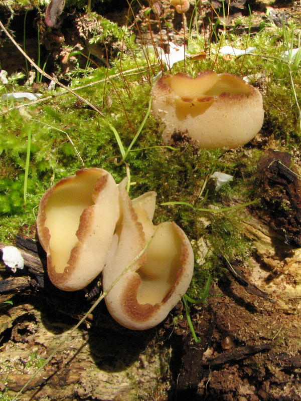 Vorläufig nenne ich diesen Fund Kurzstieliger Becherling (Peziza micropus). Jahreszeit und Substrat würden ganz gut dazu passen.
