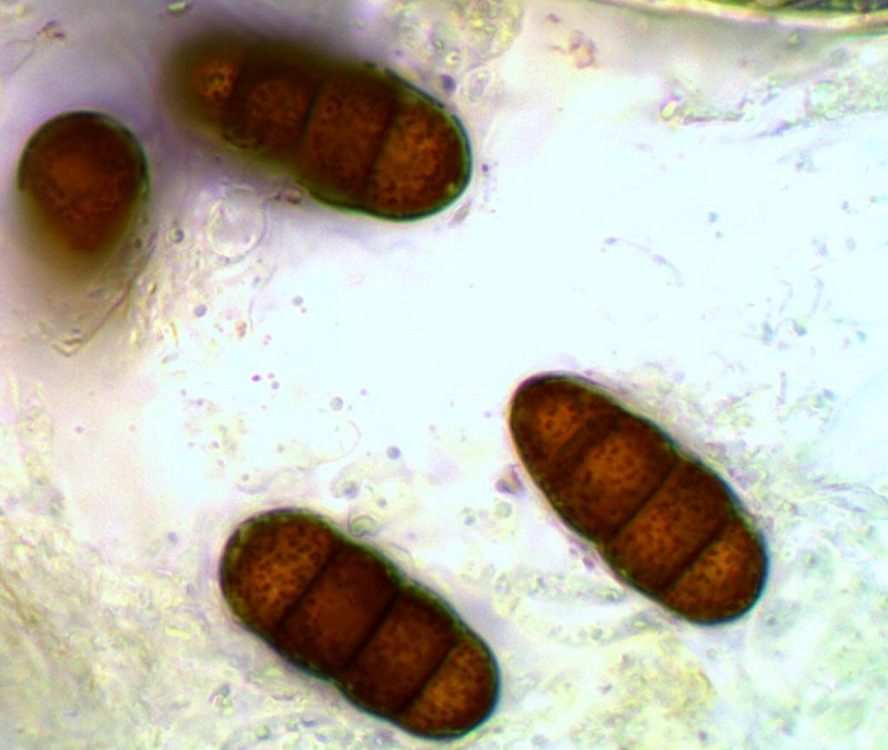 Sporen braunlich, ornamiert durch feine Warzen, alle dreifach septiert. Größe im Mittel 23,3 x 9,2µm