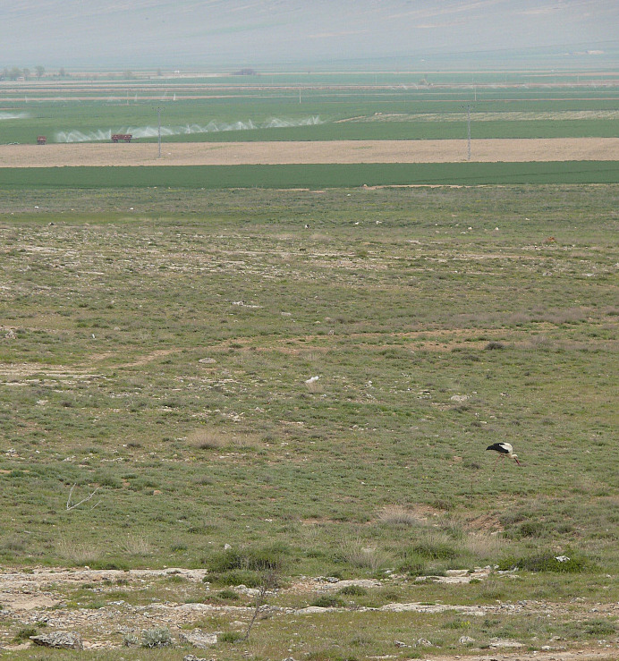 Hallo, in der Zwischenzeit habe ich reichlich Erfahrungen mit den hier vorhandenen Terfezien sammeln können. Sie kommen, wie schon gezeigt, hier in der Steppe vor, sind aber nur sehr schwer zu entdecken. Neu für mich, wohl auch für alle Mitleser, ist die Tatsache, dass offenbar auch Störche Terfezien sammeln wie man hier zweifelsfrei sieht. Genau an dieser Stelle fanden wir dann reichlich Terfezien. Kulinarisch: