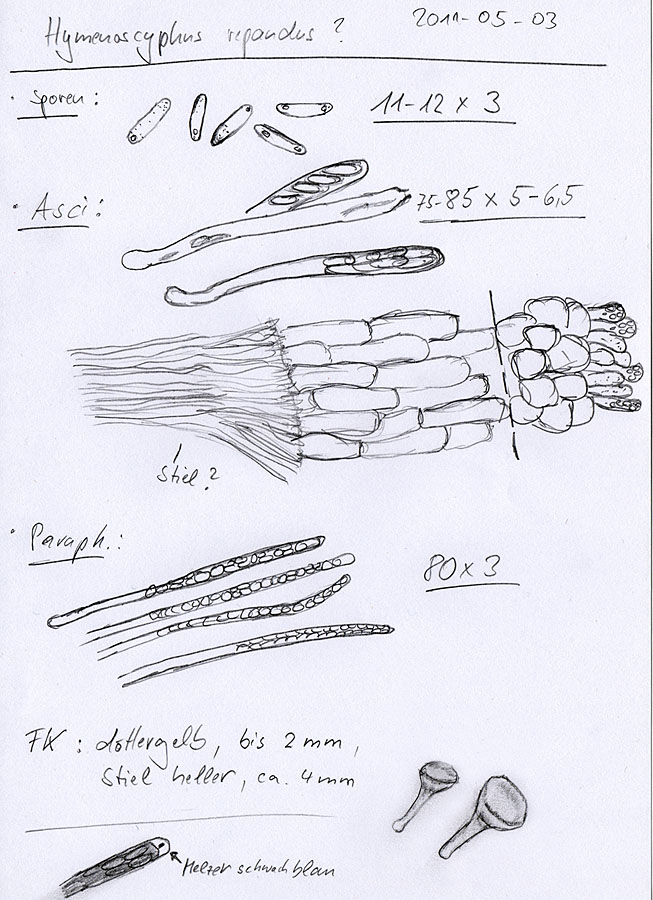 Septen an den Paraphysen konnte ich nicht sehen, wie in Deiner Übersicht - was aber wohl wieder an mir liegt. Ich hänge mal meine Notizen von heute Abend an, das Gekrakel bringt wahrscheinlich auch keine Lösung - schrecklich, wenn man vor Jahrzehnten den Bleistift mit der Maus getauscht hat, und noch nicht mal mit einem Stückchen Holz in der Hand umgehen kann... Danke sehr und liebe Grüße