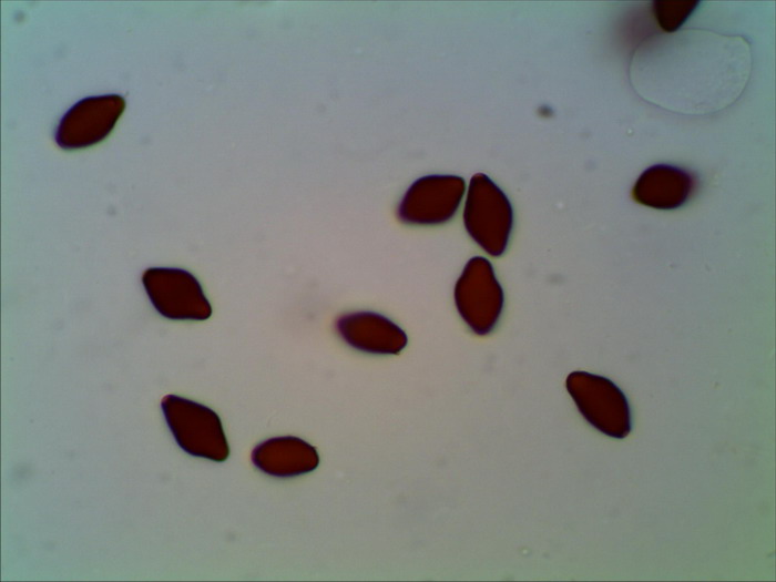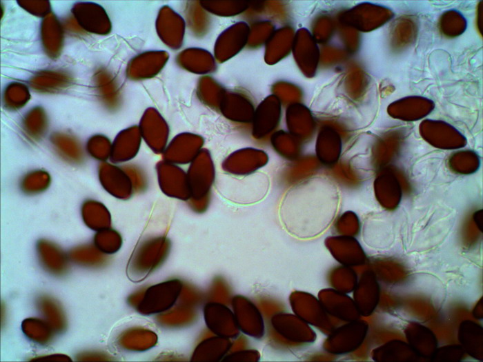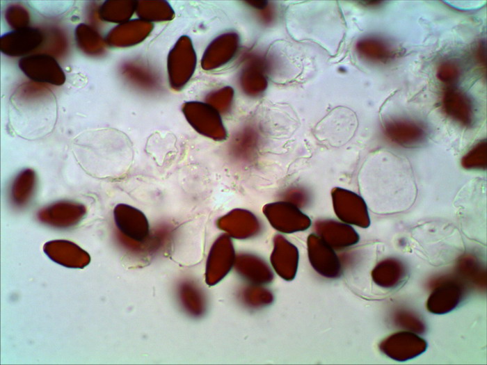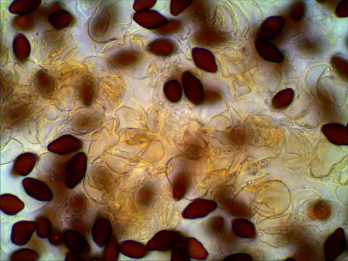 Sporengröße im Mittel 7.1µm x 4.1µm. Im Ludwig finde ich zwar einige Vertreter mit solchen eckigen Sporen, aber die sind meist mehr gestaucht gezeichnet, bzw. mit kleineren Quozienten. Die Blasenartigen Elemente dürften die Velumreste sein, die Pilze waren so klein, daß ich mit der Pinzette nur einen halben Hut zu greifen bekam. Hat jemand eine Idee? LG Hartmut