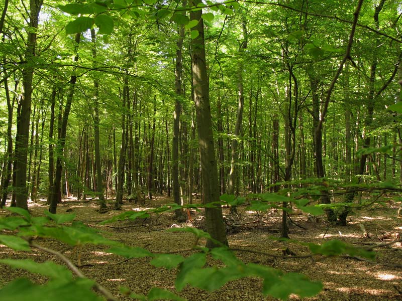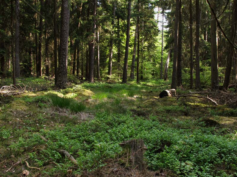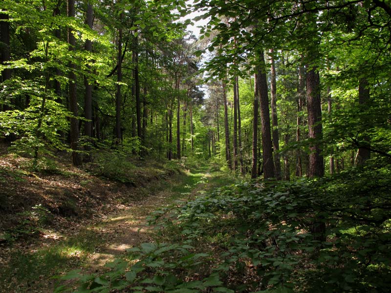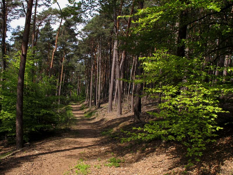 Mal Kiefern mit unterständigen Fichten, dann wieder Buchen und Kiefern.