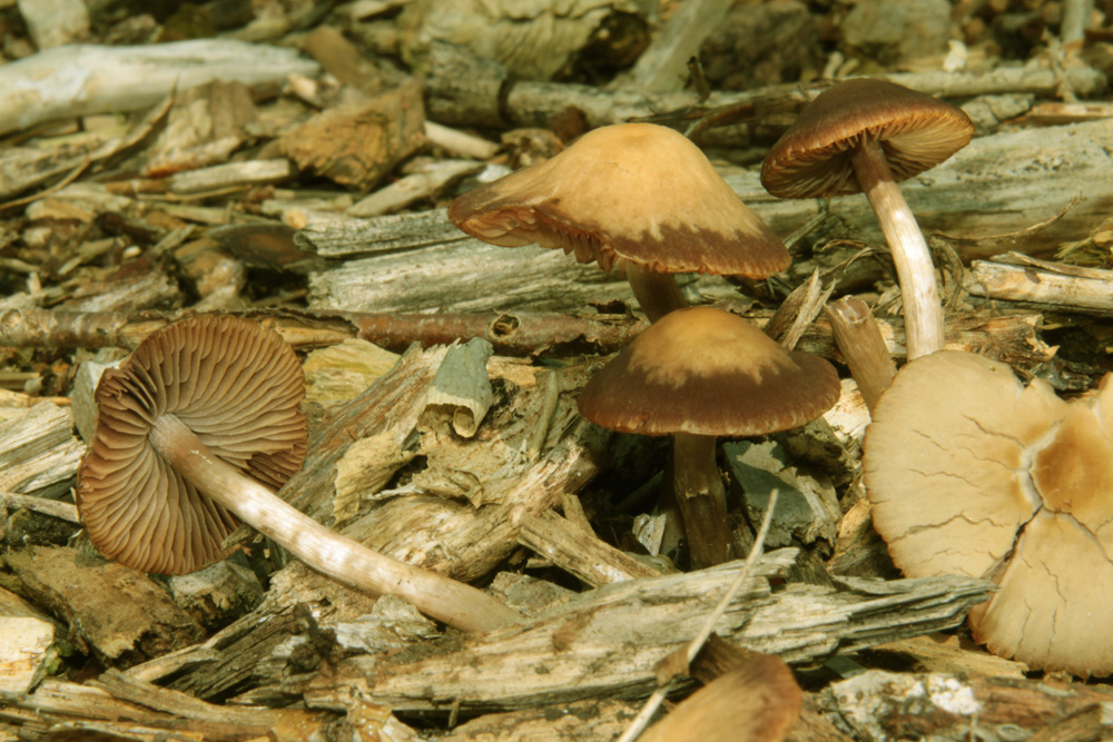 Gestern waren wir auf dem Gelände einer Gärtnerei in Kleve, wo regelmäßig gegossen wird. Es gab da so einiges. Bei dem abgebildeten Behangenen Faserling bin ich mir nicht so ganz im klaren. Weiter kamen vor: Kulturträuschling und Üppiger Träuschling - leider schon sehr überständig -, Voreilender Ackerling, zu dem der Hut rechts im Bild gehört und der Größte Scheidling.