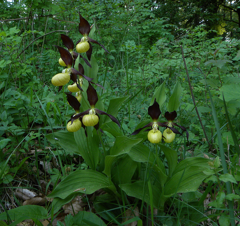 Frauenschuh - Cypripedium calceolus L. Es gibt lediglich vier Standorte mit einer solchen Populationsgröße in Niedersachsen.