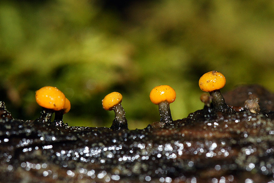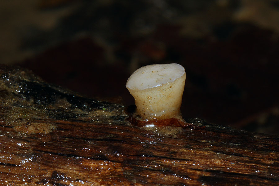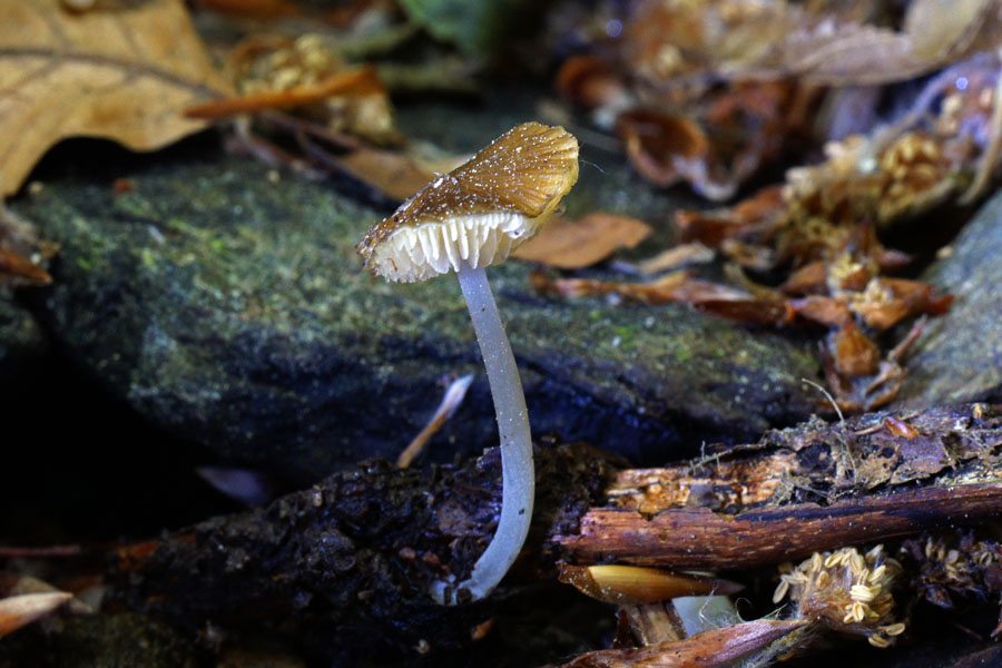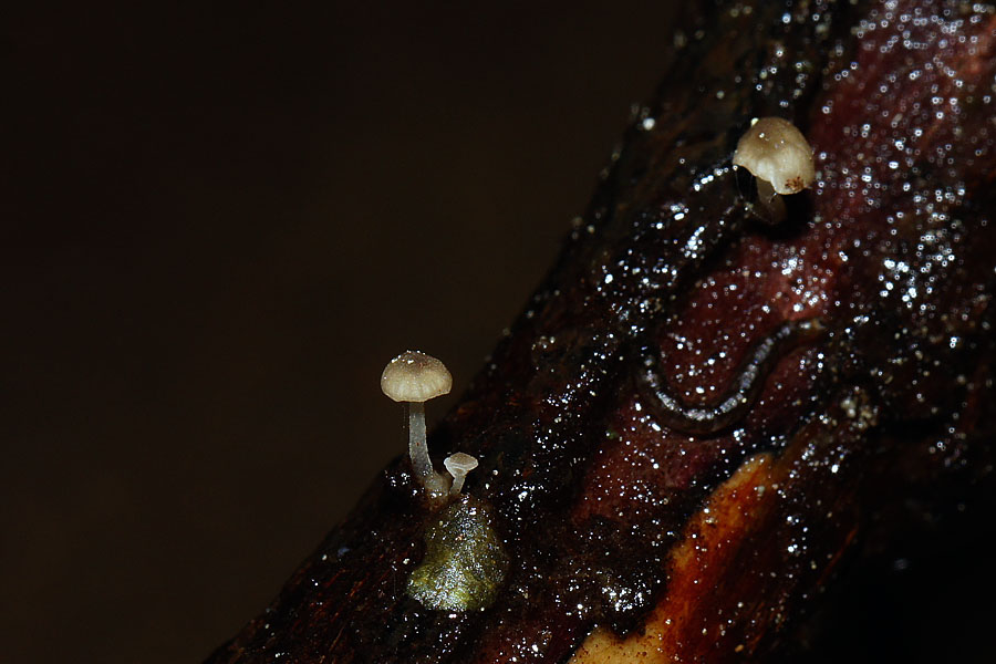 Daneben auch vereinzelt weitere Lamellenpilze, hier bin ich noch am Zweifeln, vielleicht ein Wasserfuß (Hydropus subalpinus):