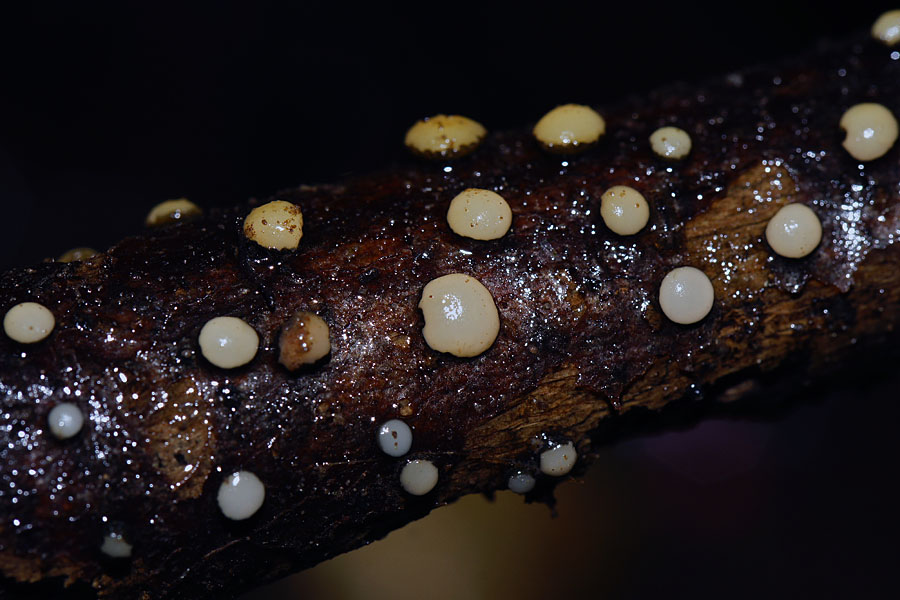 Und endlich neben der dort häufigen V. flavovirens auch V. truncorum an mehreren Stöckchen.