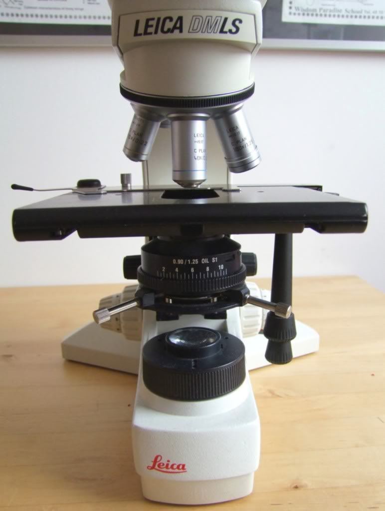 OBJEKTIVREVOLVER fünffach nach hinten gerichtet mit positiven Anschlägen OBJEKTTISCH FÜR RECHTSHÄNDER KONDENSOR Leica 0,90/ 1,25 Öl S1 mit Iris BELEUCHTUNG: 30W Halogen (Köhlersche Beleuchtung) Leitz (Leica) 541 016 Fotoadapter mit C-Mount-Anschluss 0,5 x 1/2 Zoll = 16 GEWICHT: 9 kg Hier noch einige Fotos: