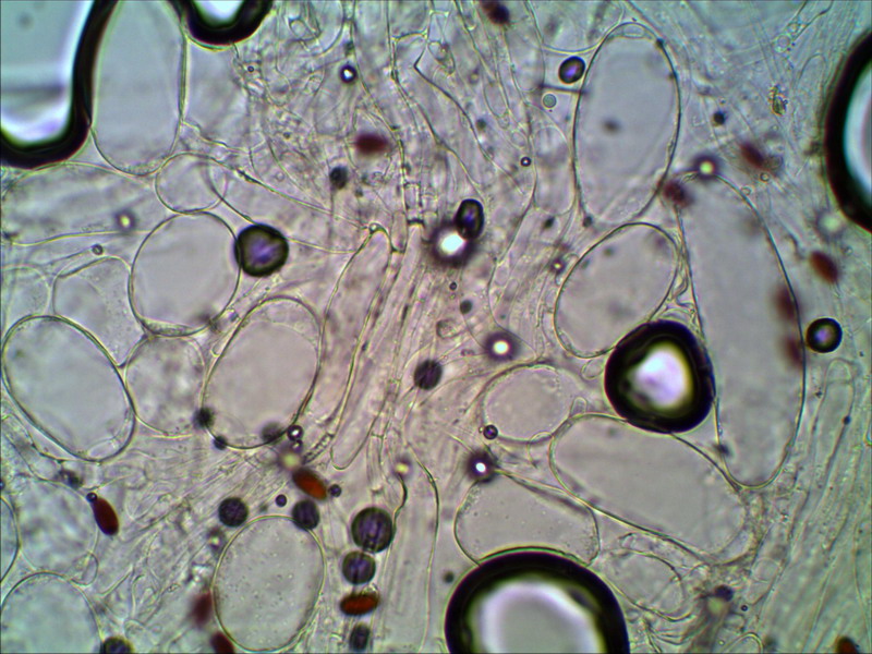 Da ich mit Fliegie mehrere Stunden unterwegs war, war der Pilz recht mitgenommen, und so kratzte ich mit dem Skalpell etwas vom Hut ab.