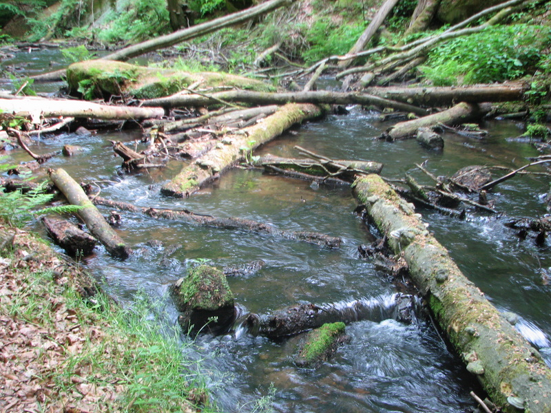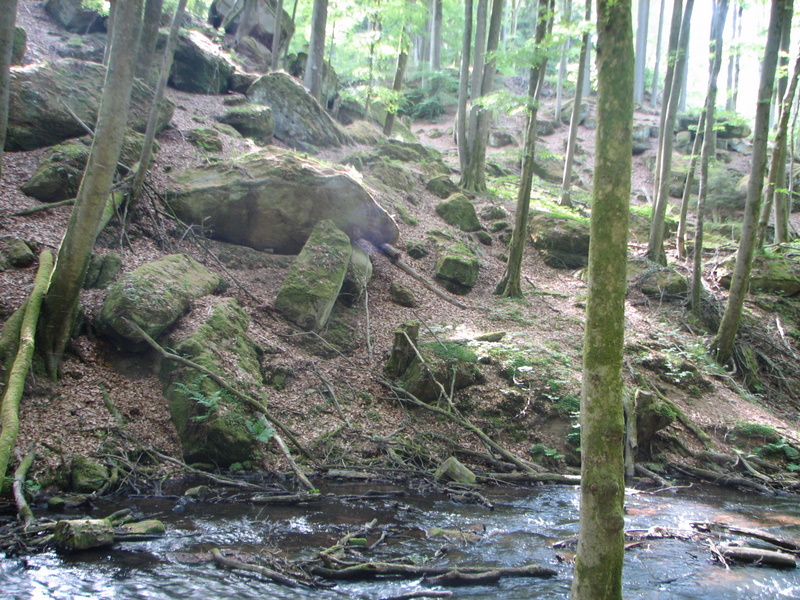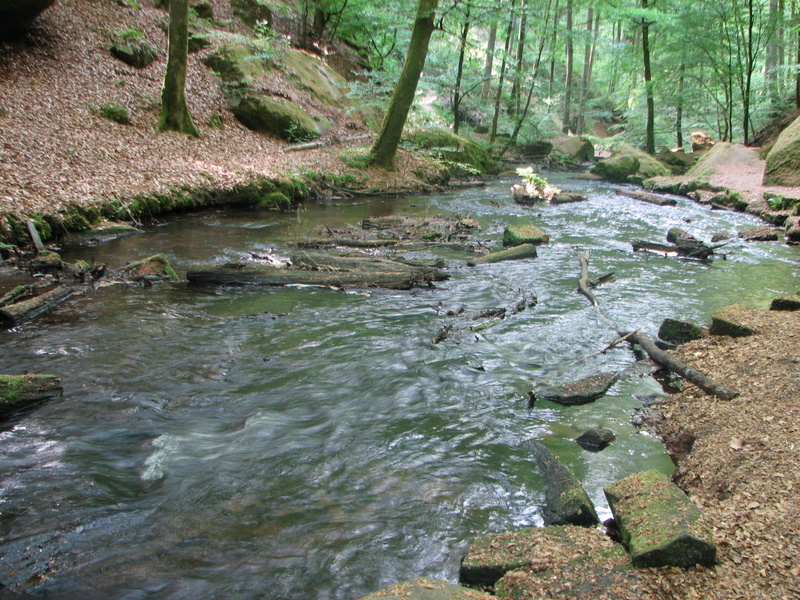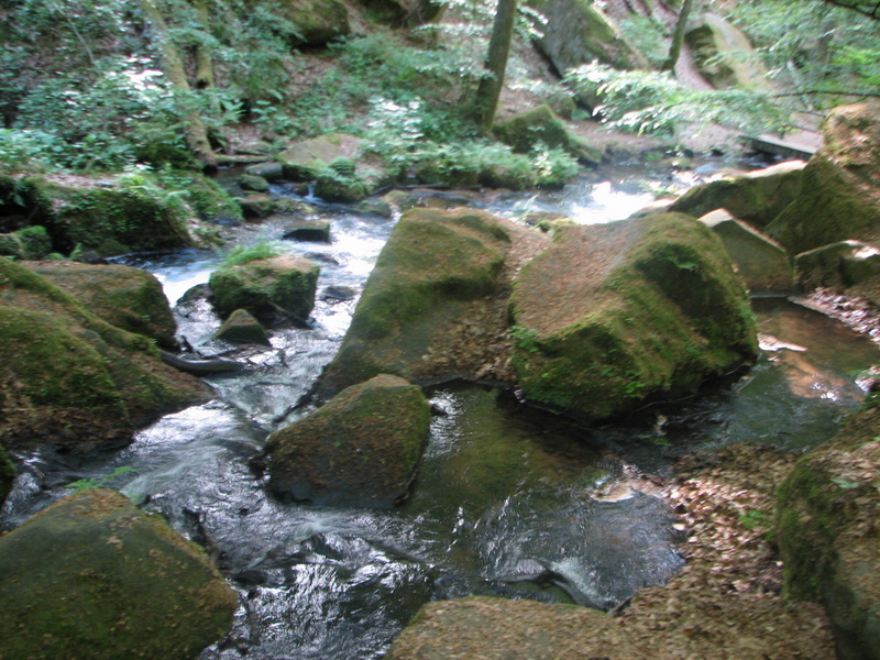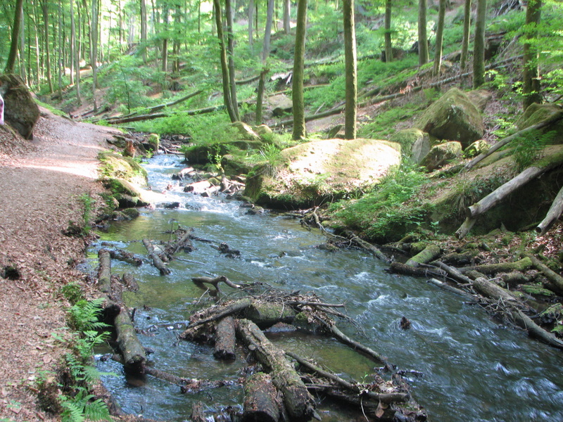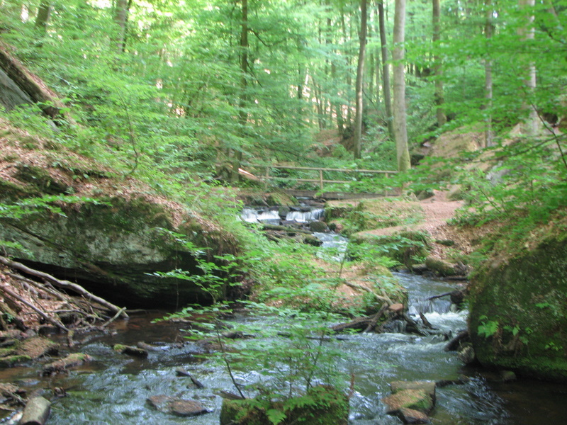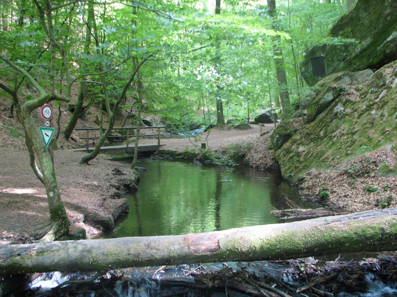 Bei einem Gespräch in der Gaststätte habe ich erfahren, das mit den 3 kurzen Regengüsse am Sonntag gerade der Staub von den Blättern entfernt wurde. An Pilzen haben wir neben vielen Konsolenpilze lediglich 2 Maiporlinge und einen Lamellenpilz an Holz gesichtet. Die Fotos zu letzteren sind leider durch zu starkes beizoomen bei wenig Licht unscharf geworden (was ich erst zu Hause feststellte). An Stellen wo fast keine Sonne hinkommt, war der Boden etwas feucht. Ein Fehlen von Pilzen führe ich darauf zurück, das es in der Schlucht doch kühler und auch noch jahreszeitlich zu früh sein wird. „Kleinkram“ war bei gelegentlichem Stöckchen drehen in Wassernähe auch nicht zu sehen. Trotzdem war es für ein schöner Ausflug. Am Sonntag, hoffentlich nach einem angekündigten und dringend notwendigen Regen, nehme ich einen neuen Anlauf in einem anderen Gebiet um endlich was vor die Linse zu bekommen. Für die Pfanne ist es noch etwas zu früh. Sollte jemand in nächster Zeit einen Pfalz-Aufenthalt planen, so kann ich einen Besuch dieses Tales wegen seiner Ursprünglichkeit nur empfehlen. Gruß aus dem Pfälzerwald