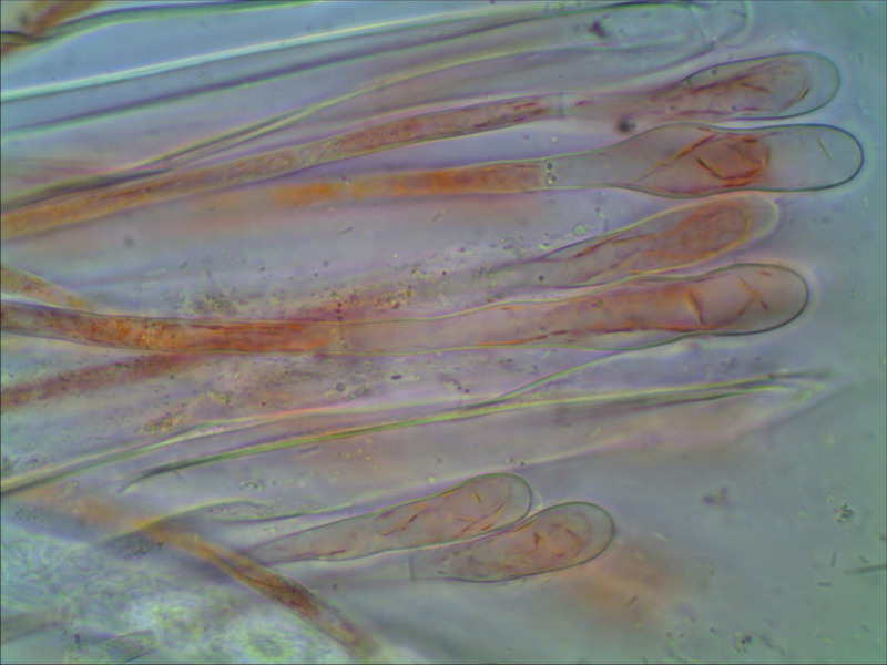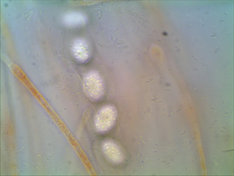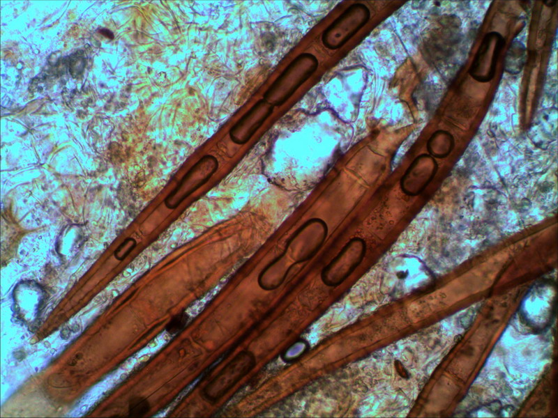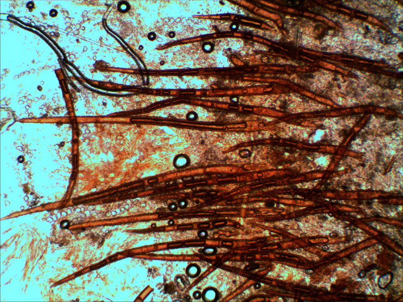 Liebe Pilzfreunde Zu diesem Ergebnis bin ich heute gekommen. Ich habe mir mehrere Fruchtkörper (nicht alle) angeschaut. Die Merkmalskombinationen passen recht gut. Fundort NSG Zehling im Schlamm (feuchter kalkhaltiger Erde) direkt am Bachlauf. Begleitbäüme in der Nähe Eschen und Weiden. Sporengröße (19,6) 20,4 (21,4) x (14,2) 14,6 (15), Ornament grob isoliert warzig, Breite der Warzen gemessen bis 1,8µm und Höhe bis 1,4µm. Haarlänge (300) 670 (700) x (26) 30 (36), dickwandig mit mehrfachen Septierungen. Kann ich den Fund so stehen lassen oder gibt es noch weitere Möglichkeiten? LG Hartmut