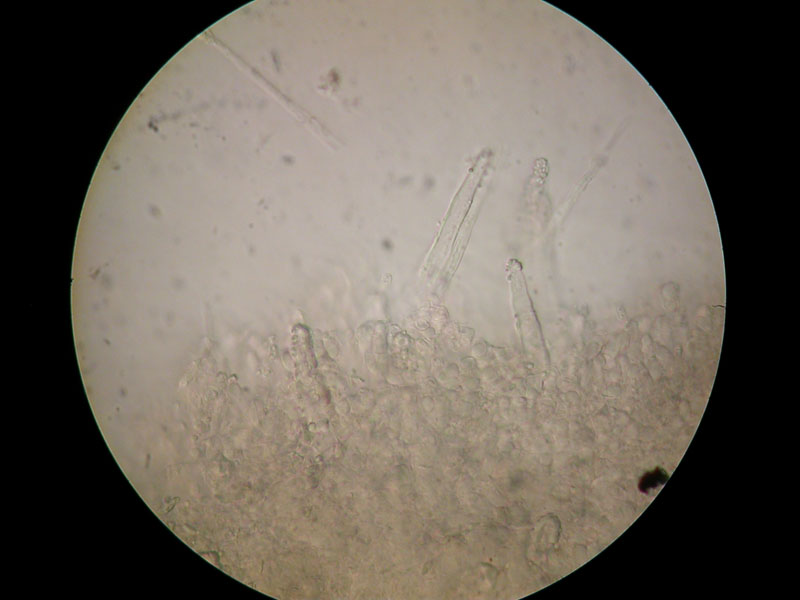 hier ein Zystidenbild. Links im Vordergrund sieht man eine stark inkrustierte Zystide (Lampro?).