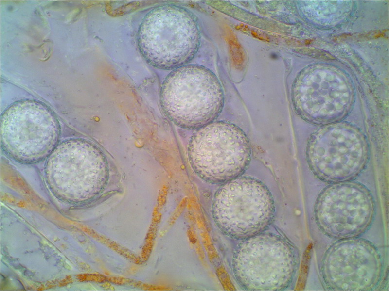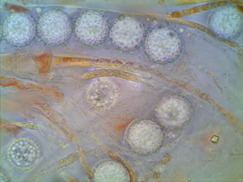 Nun schon die ersten Bilder von Kollektion 2. Eines kann ich sagen, so einen hatte ich noch nicht. Nachdem ich trechispora und legaliae schon gefunden und intensiv angeschaut habe, kann ich diese ausschließen. Hier denke ich liegt mir Scutellinia minor oder barlae vor. Die Fotos nur zur Vorinfo, nun muß ich noch vermessen, Haarlängen fotografieren und messen, und das Ornament in Baumwollblau färben. LG Hartmut