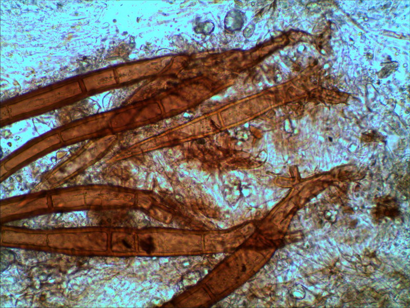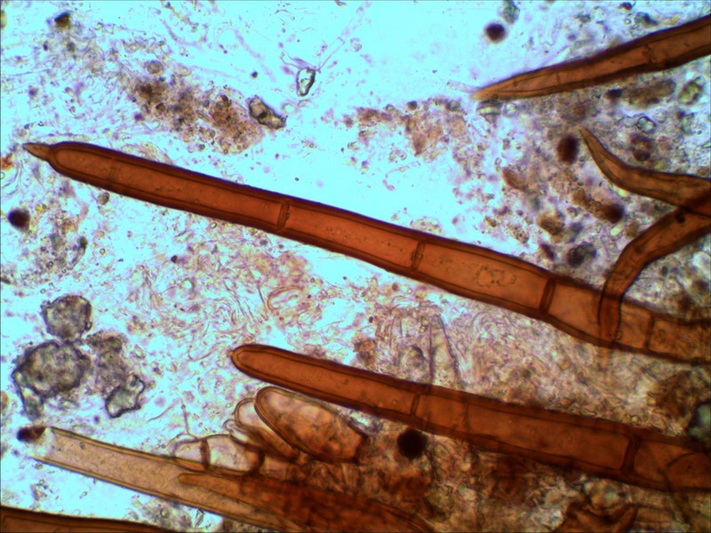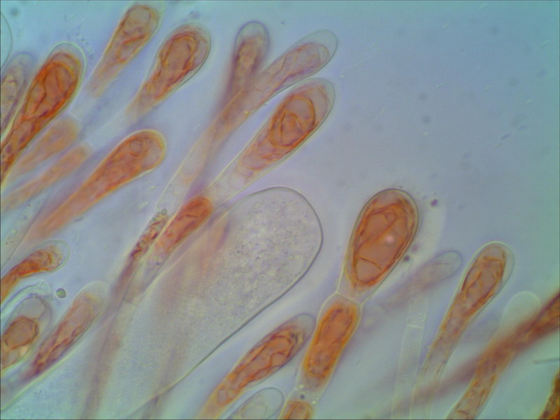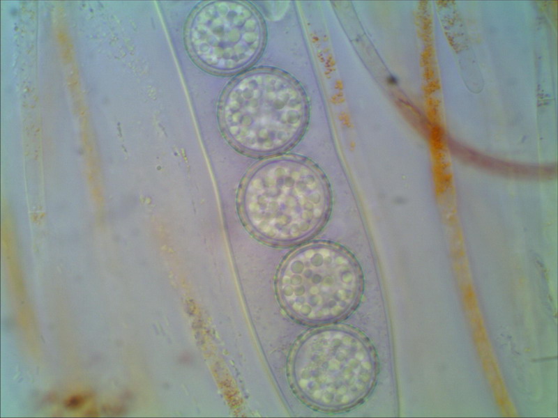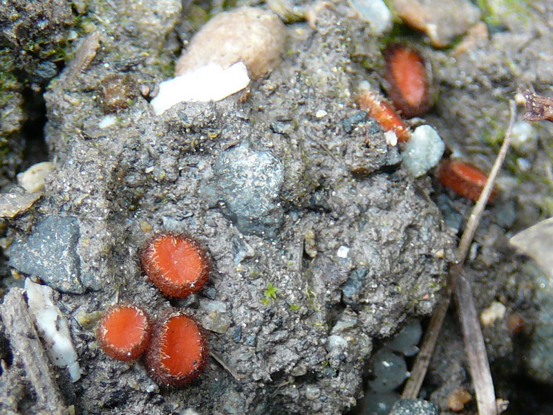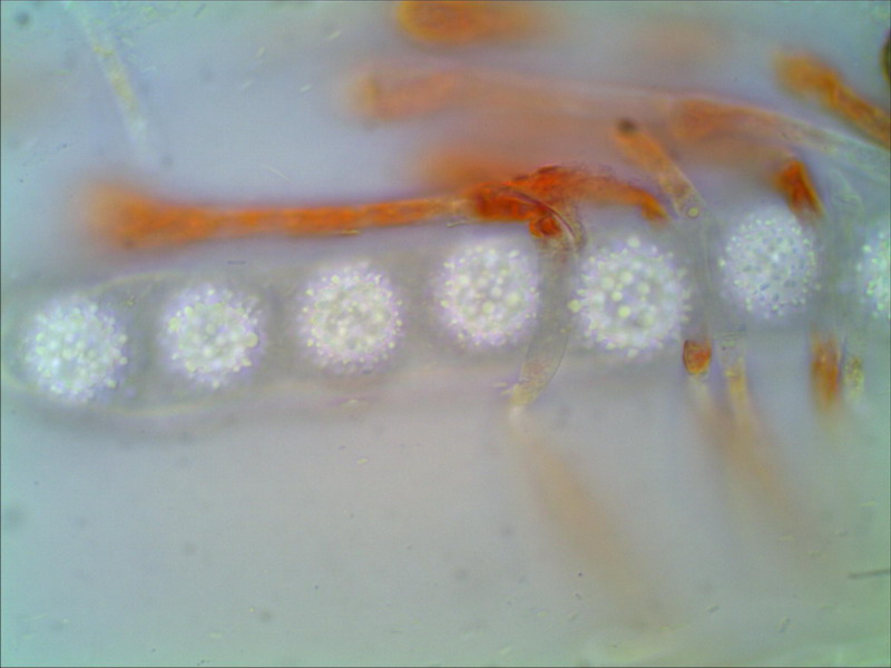Hallo Pilzfreunde Hier weitere Bilder von der heranreifenden Scutellinia. Noch nicht abgeschlossen, aber man sieht schon, was es in etwa werden will. Diese Teile würde ich noch eher zu Scutellinia barlae stecken, diese wachsen (auch zur Zeit noch) ca. 300 Meter von Scutellinia 02 barlae cf. entfernt. Die Haare dieser Kollektion sind deutlich kürzer (noch?), die Farbe der Pilze kräftiger orangerot und das Sporenornament leicht verschieden, hier fallen einzelne dicke "Warzen" auf der Sporenwand auf. Weitere Untersuchungen folgen. LG Hartmut