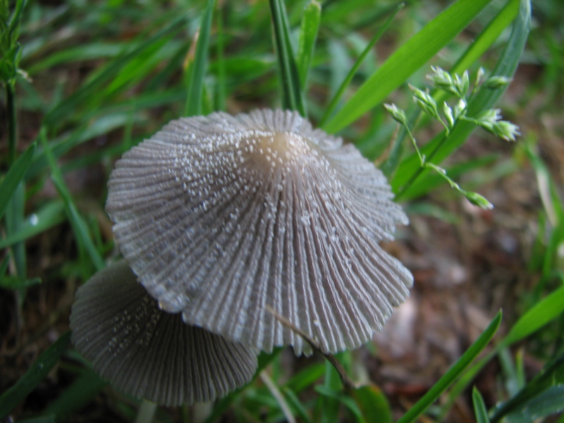Verstärktes Interesse an einem winzigen (vermutlichen) Gold-Mistpilz. Mist war aber weit und breit nicht zu sehen.