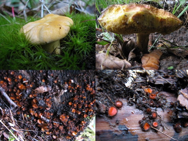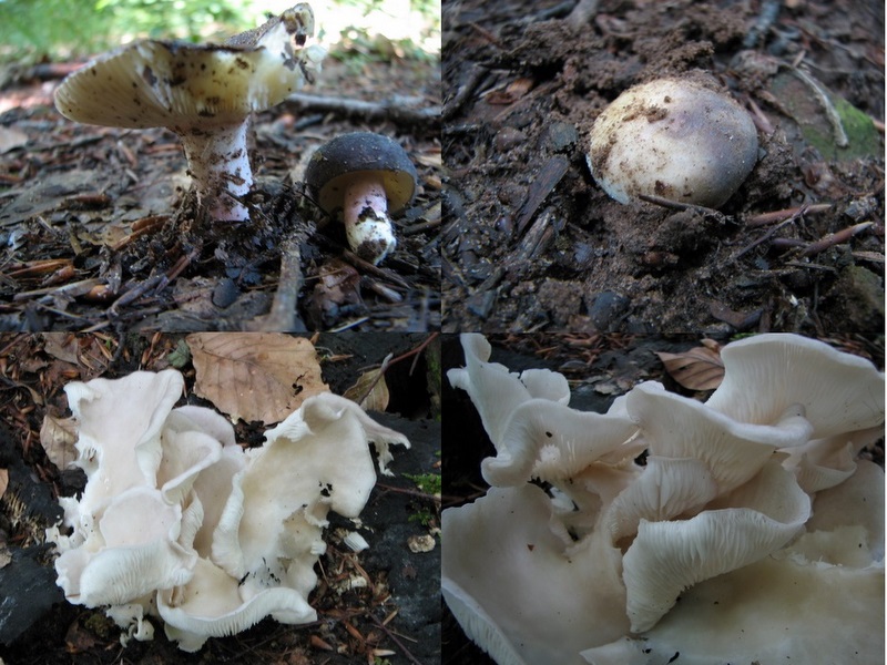 Dann unbestimmte Täublinge auf dem Weg und etwas im Gebüsch versteckte Austernseitlinge auf einem Stuppen.
