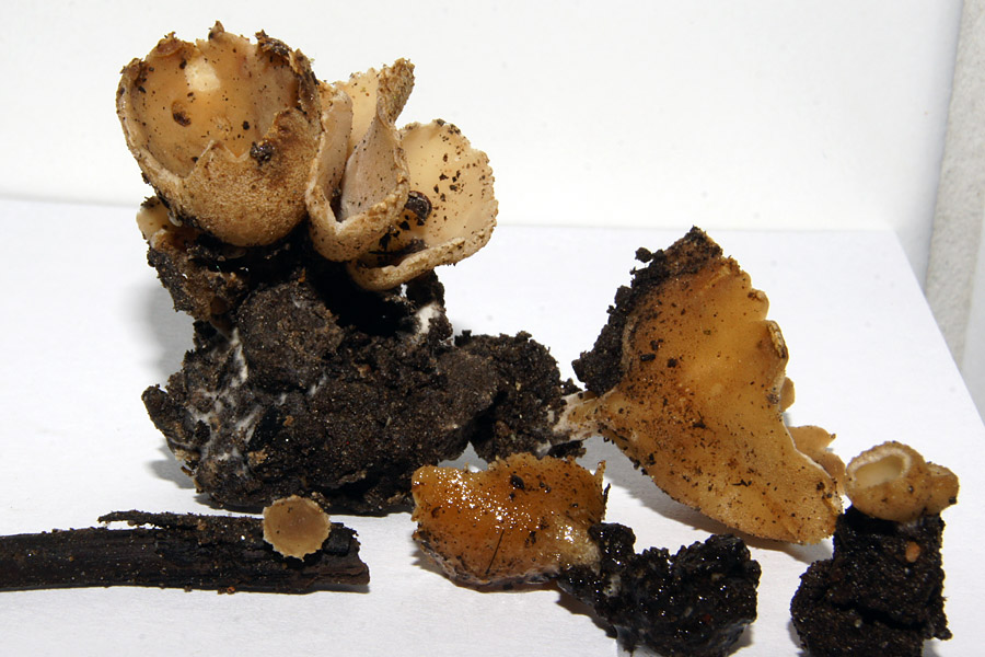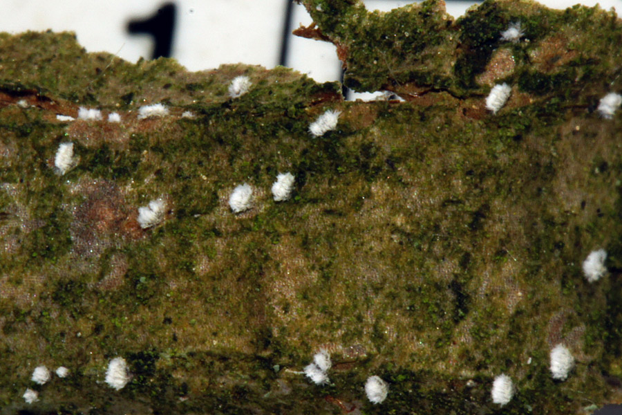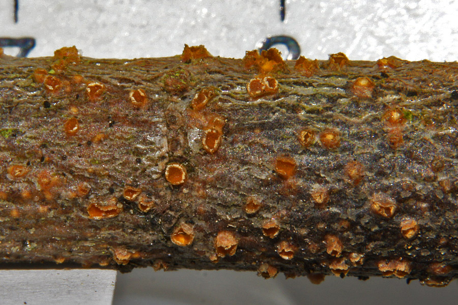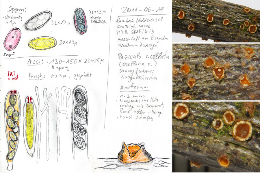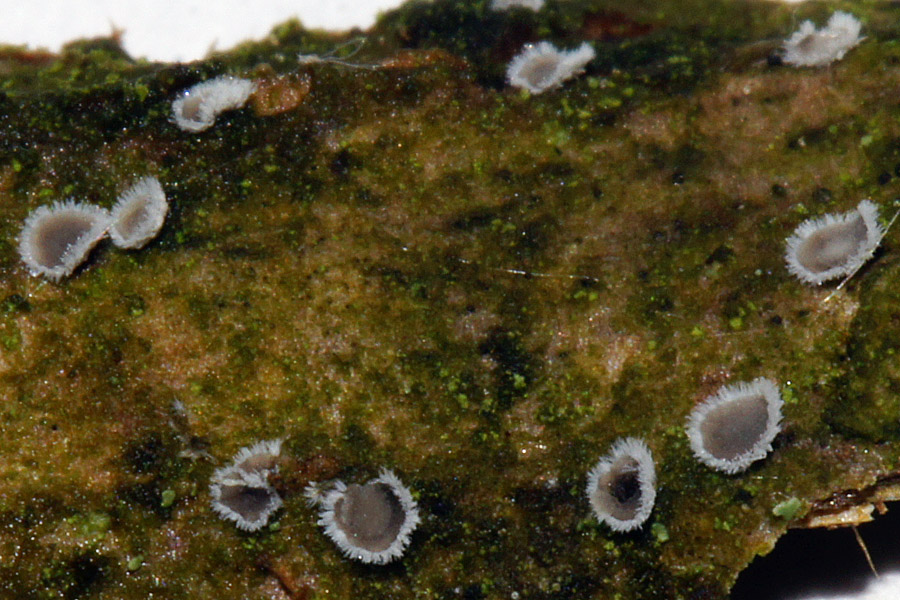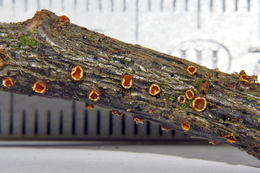 Kommt hier noch etwas anderes als Pezicula (Ocellaria) ocellata in Frage? 3. Diese etwa 0,5 mm große Fussel hatte ich Sonntag vom Ast eines kleinen Holunders abgeschabt
