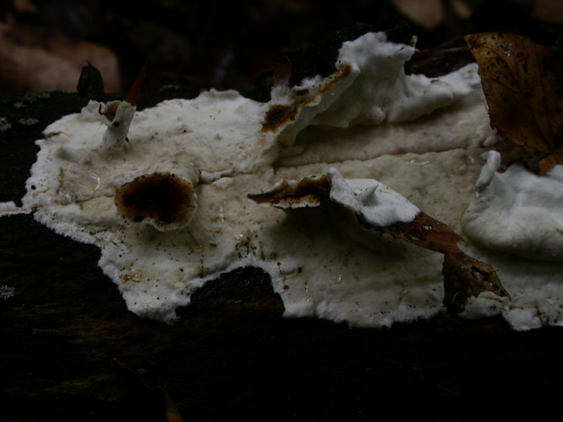 Liebe Pilzfreunde, ich habe hier einen Schichtpilz von dem ich mir ganz sicher bin, dass es Laxitextum bicolor sein muss, aber ich kann es nicht nachweisen. Es gelingt mir nicht die Gloeozystiden als solche zu erkennen und die Sporen erscheinen mir in Wasser glatt. Beschreibung:
