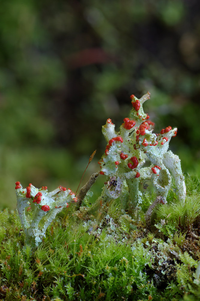 Das wars dann, bis auf diese schöne Flechte, Cladonia pyxidata mit knallroten Apothecien: